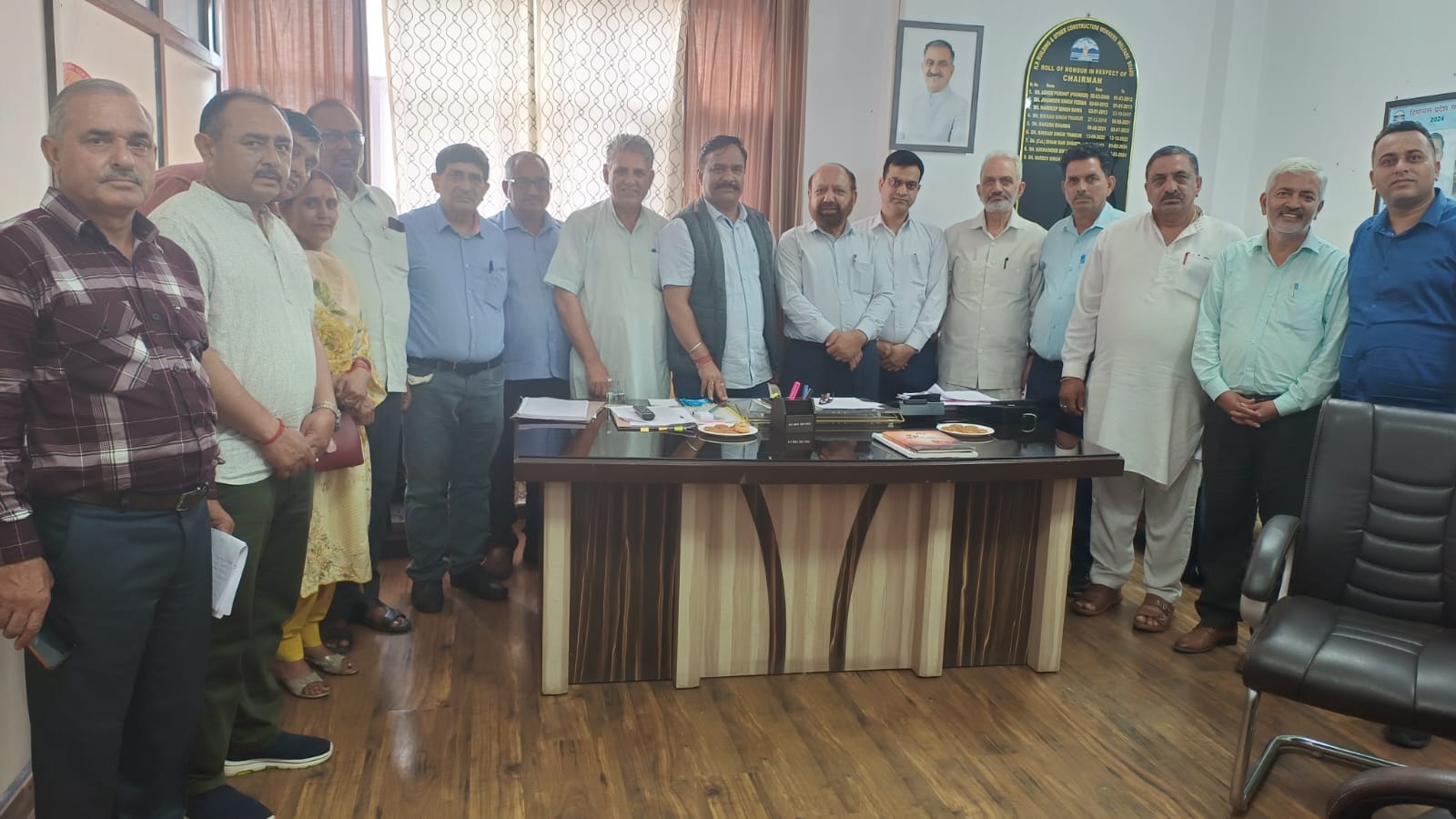 भवन और अन्य निर्माण श्रमिक कल्याण बोर्ड के अध्यक्ष नरदेव सिंह कंवर की अध्यक्षता में बोर्ड की एक बैठक आयोजित की गई जिसमें विभिन्न ट्रेड यूनियनों के प्रतिनिधियों ने भाग लिया।