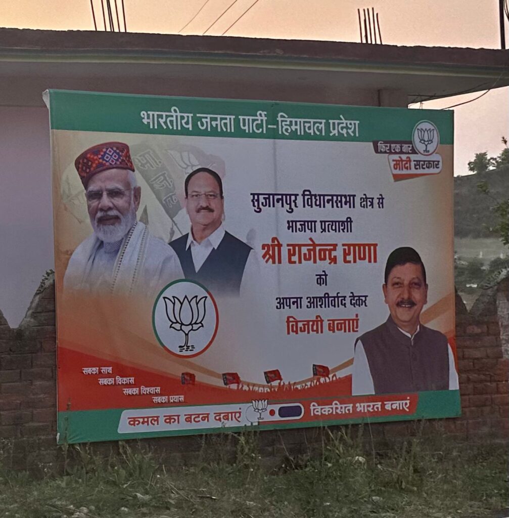 सुजानपुर में राजेंद्र राणा के होर्डिंग से धूमल- अनुराग के फोटो गायब होने पर युवा कांग्रेस ने कसा तंज