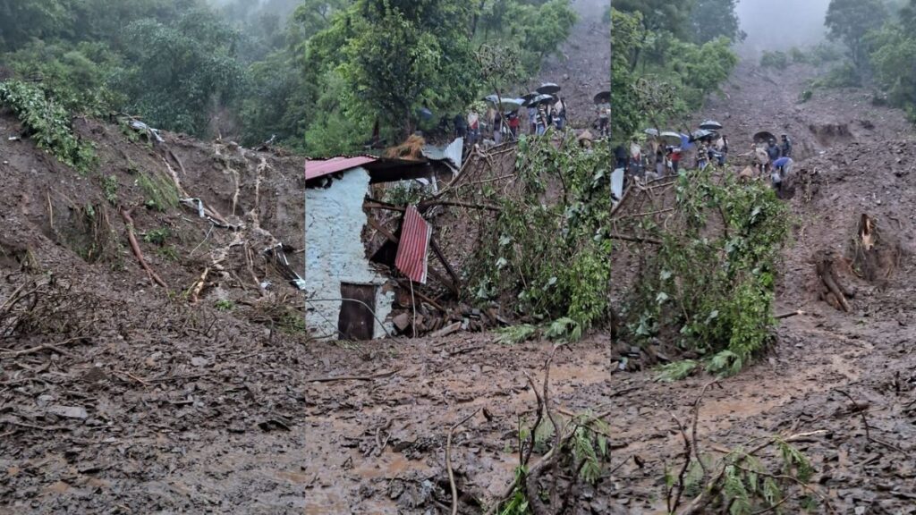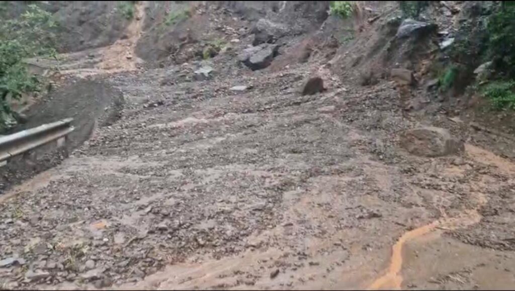ककीरा के घारी में भारी भूस्खलन के कारण मलवा सड़क पर आने से मार्ग अवरुद्ध