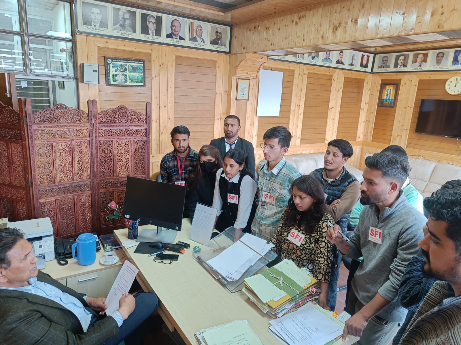 *स्टूडेंट्स फेडरेशन ऑफ इंडिया की हिमाचल प्रदेश विश्वविद्यालय इकाई ने विश्वविद्यालय के वाणिज्य विभाग में हुए Ph.d प्रवेश को लेकर Dean of Studies को ज्ञापन सौंपा।जिसमें स्टूडेंट्स फेडरेशन ऑफ इंडिया ने विश्वविद्यालय प्रशासन पर आरोप लगाते हुए कहा कि विश्वविद्यालय प्रशासन अपने चहेतों को भरने के लिए लगातार अपनी कुर्सी का दुरुपयोग करके विश्वविद्यालय में फर्जीवाड़े कर रहा है। वाणिज्य विभाग में अनुसूचित जनजाति (ST) की सीट को गैर संविधानिक तरीके से अनारक्षित करके खत्म कर दिया गया और उसकी जगह किसी और छात्र को Ph.d में प्रवेश दे दिया। इस सम्पूर्ण घटना पर DS ने कहा कि इसके लिए कमेटी का गठन कर दिया गया है और जल्द ही इस पर करवाही की जाएगी।स्टूडेंट्स फेडरेशन ऑफ इंडिया ने दूसरी मांग में यह कहा की हिमाचल प्रदेश विश्वविद्यालय ने इंट्रेंस शेड्यूल निकाल दिया है लेकिन अभी तक ऑनलाइन आवेदन करने के लिए पोर्टल नहीं खोला है। दूसरी और देखा जाए तो विश्वविद्यालय UG की परीक्षाएं विभिन्न कॉलेजों में करवा रहा है जिसके चलते UG अंतिम सत्र का छात्र अभी परीक्षाएं देने में व्यस्त हैं। छात्र अभी तक अपनी परीक्षाएं पूरी नहीं दे पाया है। और विश्वविद्यालय द्वारा अभी ऑनलाइन आवेदन का पोर्टल भी नहीं खोला गया है और इंट्रेंस शेड्यूल जारी कर दिया गया है। ऐसे में छात्र कब ऑनलाइन आवेदन करेगा और कब तैयारियां एंट्रेंस टेस्ट के लिए करेगा । इसके लिए DS ने कहा कि एंट्रेंस एग्जाम की तारिक को आगे बढ़ाया जाएगा और साथ ही स्टूडेंट्स फेडरेशन ऑफ इंडिया के कहने पर DS ने कहा कि विभिन्न कॉलेजों के अंदर एंट्रेंस एग्जाम के लिए हर कॉलेज में एक सेमिनार छात्रों को एंट्रेंस एग्जाम देने के लिए किया जाएगा।