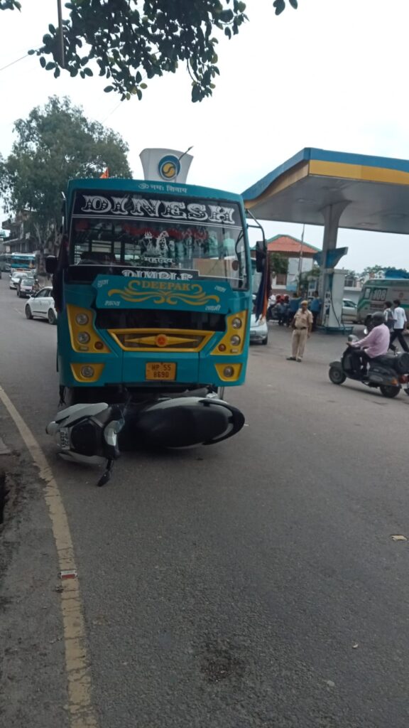 हमीरपुर में मिल्खी पेट्रोल पंप के पास निजी बस व स्कूटी सवार की टक्कर