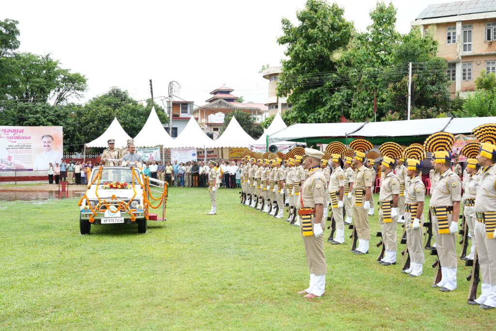 मुख्यमंत्री ने देहरा में राष्ट्रीय ध्वज फहराया तथा राज्य पुलिस, गृह रक्षक, एनसीसी, एनएसएस की टुकड़ियों की सलामी ली